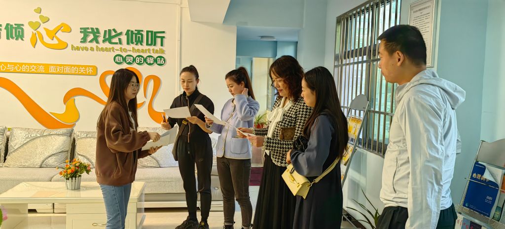 在员工志愿者和值班老师的引导和讲解下,一行人参观了心理咨询室、情绪宣泄室、情绪放松室、团体辅导室等区域,还体验了音乐放松和人机交互进行情绪宣泄的有趣形式,对公司的老员工心理健康教育中心有了更全面的了解。老师们纷纷表示在今后的员工工作开展中,要充分运用心理健康中心提供的资源,做好所带班级的老员工心理健康教育和指导工作。